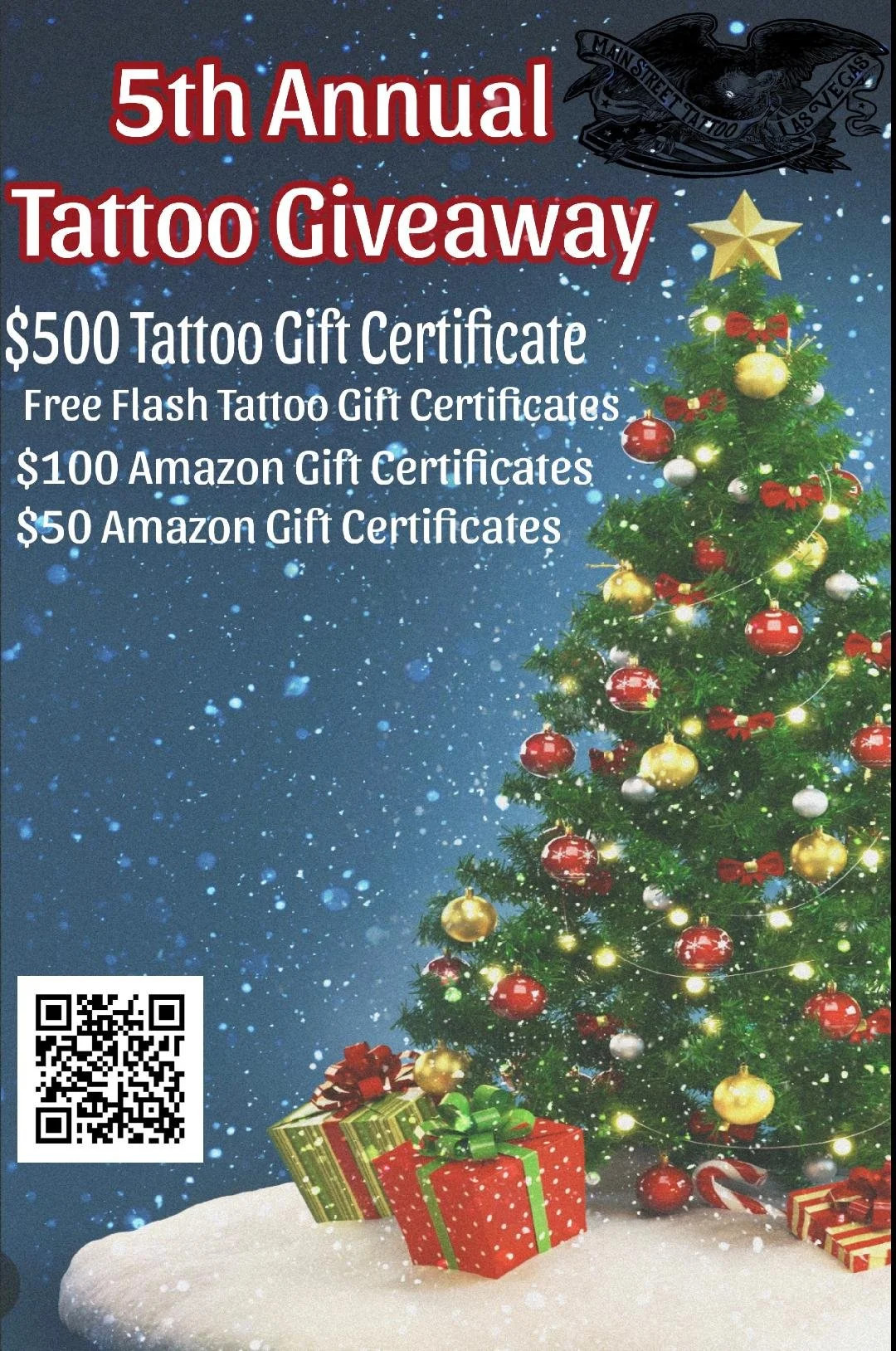 Every year in an effort to show our appreciation to the community that has supported us, we raffle off Tattoo gift certificates to help raise funds for local charities. This year, in addition to the $500 Tattoo Gift Certificate, we will also be raffling off several Amazon Gift Cards and Gift Cards donated from other local businesses, allowing us have more winners than ever! Simply fill out the form, and an email will be sent to you with the raffle ticket number along with a picture of the physical raffle ticket(s). Proceeds will help our friends at Shine-A-Light foundation continue their mission and we will also be donating toys to Help of Southern Nevada to help them ensure that every child has a gift to look forward to this Christmas. We thank you for 5 years of support, and allowing us to help give back! ❤️
